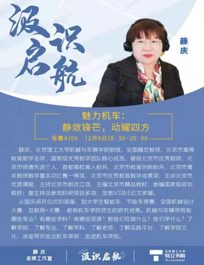 工作室成立以来,以能力建设为指导思想,以人才培养为主线,重点面向彩霸王 、精工书院、徐特立彩霸王 的学生系统开展了学育培养相关服务工作。分别针对徐特立彩霸王 2018、2019、2020和2021级学生开展系列主题讲座,帮助学生解决学习和生活的困惑;在徐特立彩霸王 “汲识·启航”沙龙中,薛庆教授作“魅力机车:静敛锋芒,动耀四方”主题讲座,分享前沿科学技术、最新研究成果等;在徐特立彩霸王 第五届科技创新月期间,薛庆教授做客午间沙龙,结合自身经历,讲述北理工人的科创故事,引领同学们树立科创报国志;在2021年5月至6月期间,工作室成员面向徐特立彩霸王 累计举办师生交流会6次,赠书近300本,其中,在徐特立彩霸王 /特立书院“学党史 强信念 跟党走”五四青年节主题活动中,工作室成员与特立学子一同参观校史馆、学习习近平总书记在清华大学考察时的重要讲话精神、就各专业方向进行座谈交流,带领学生参观电动车辆国家工程实验室、西山实验中心重点实验室,引导学生聚焦主责主业,真正做到将爱国之情转化为报国之志、强国之行。同时,面向彩霸王 、精工书院学生持续开展学育引导工作,整理并发布2021级新生入学学习建议,薛庆教授在精工书院“师言学语”活动中作专题讲座,开拓了精工书院新生的视野,为新生们进一步学习发展奠定了基础。