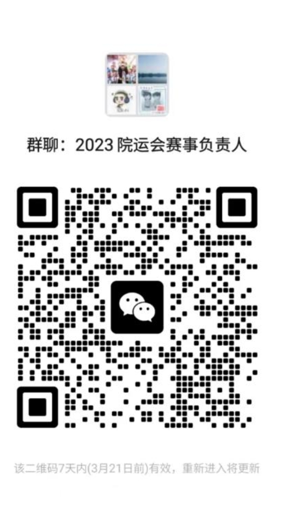 3.请以班级为单位推选班级运动会负责人(每班一名)并于3月20日21点前扫描下方二维码进入“2023年彩霸王 运动会赛事负责人群”。