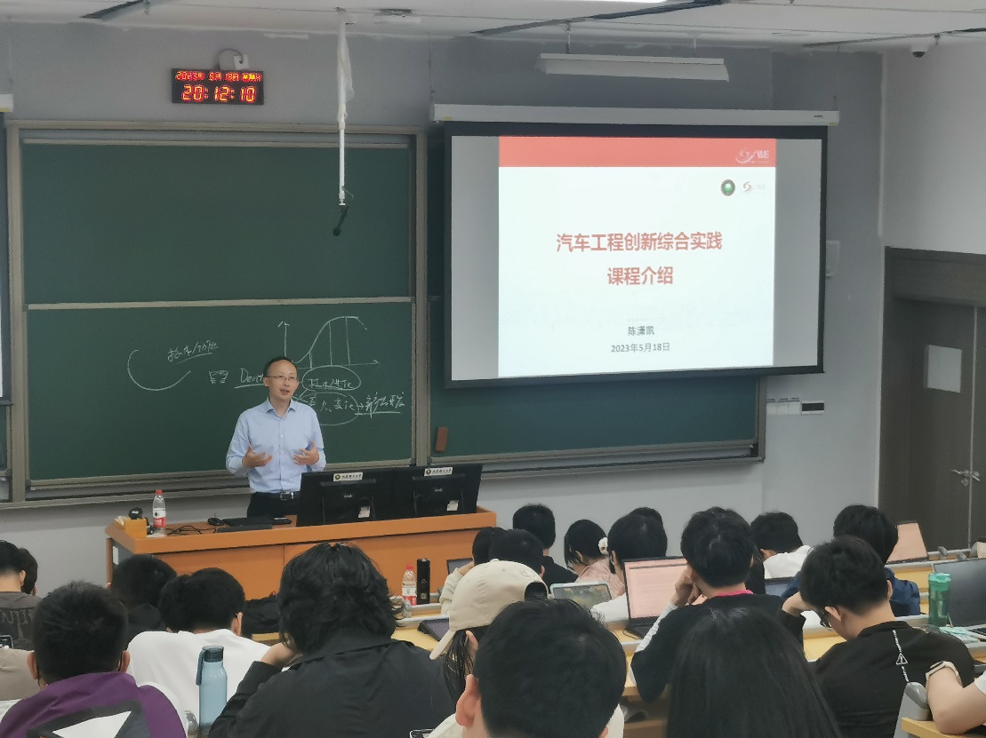 讲座后,陈潇凯老师介绍了汽车工程创新综合实践的“项目制”课程形式,引导学生组建项目团队,运用所学的专业知识与TRIZ创新理论协作完成导师发布的汽车工程领域相关创新课题。