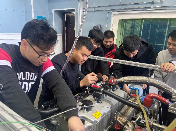 本次点火仪式是氢内燃机在中型商用车领域的一次里程碑式的节点,标志着氢内燃机作为氢能重要的应用方式取得了新的突破性进展。本次点火的YCK05氢内燃机是在玉柴工程师和北京理工大学氢发动机实验室的师生通力合作下完成的,这次点火成功也为后续整机项目研发奠定了良好的合作基础。本项目自立项开始,双方组成的项目组密切配合,通过模型的预测设计、整机的机械改造、安装测试传感器以及涉氢零部件及系统设计,完成了燃氢内燃机的改造,实现了YCK05氢内燃机燃氢稳定运转。