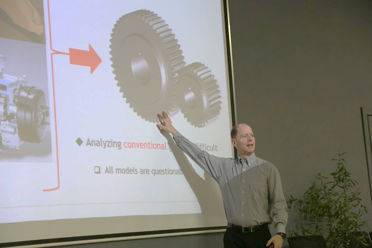 16日上午,Parker教授在车辆实验楼报告厅作专题学术报告,系统阐释"高速齿轮动力学创新解决方案:高精度接触建模与参数失稳抑制"。报告聚焦其开发的有限元-多体动力学耦合技术,通过高精度接触建模突破传统齿轮仿真局限。现场师生就非线性振动抑制、轻量化齿轮疲劳预警等前沿问题与教授深度互动,为彩霸王 齿轮动力学研究提供了新方法论指导。